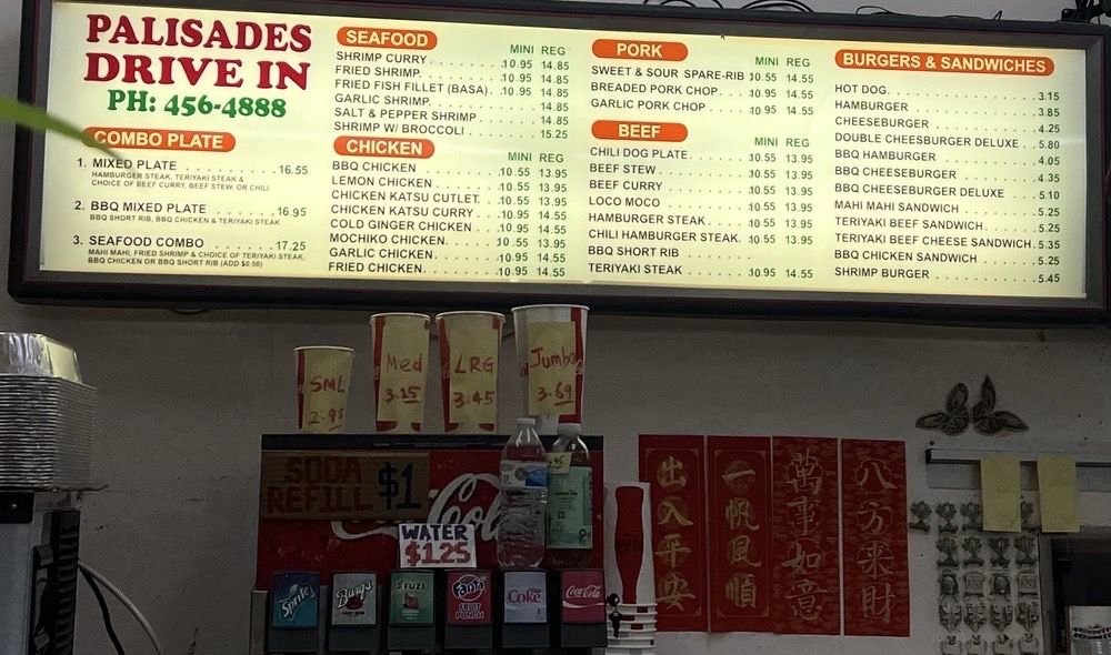 Palisades Drive Inn is a charming barbecue Chinese restaurant tucked away in the peaceful Palisades area of Pearl City. With a diverse menu, offering everything from roasted pork to garlic chicken, this spot caters to a variety of taste preferences.